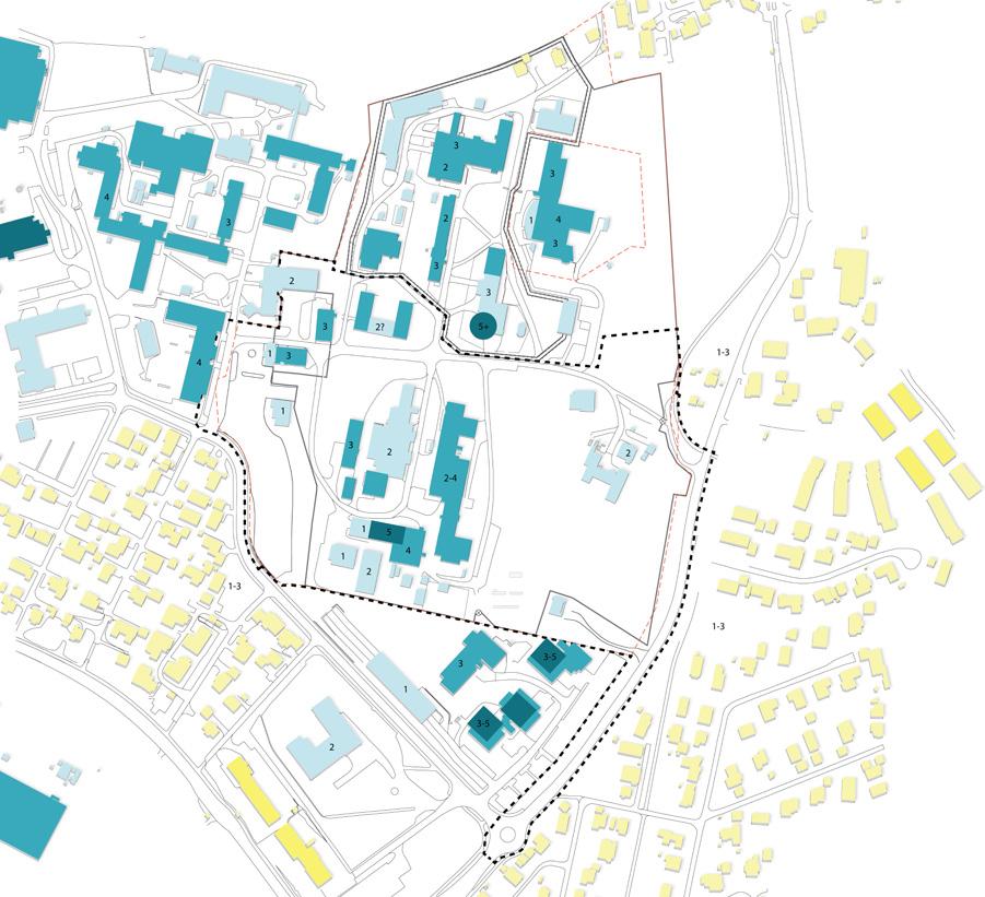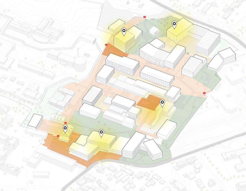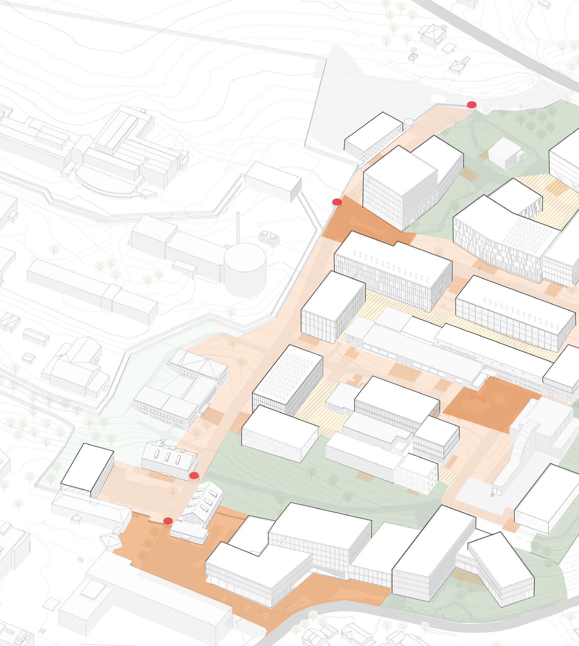Plangrepet kobler eksisterende og ny bebyggelse sammen og bidrar til å skape nye akser og byrom. De sentrale områdene av eiendommen er viktige for å løse både dagens og morgendagens behov.