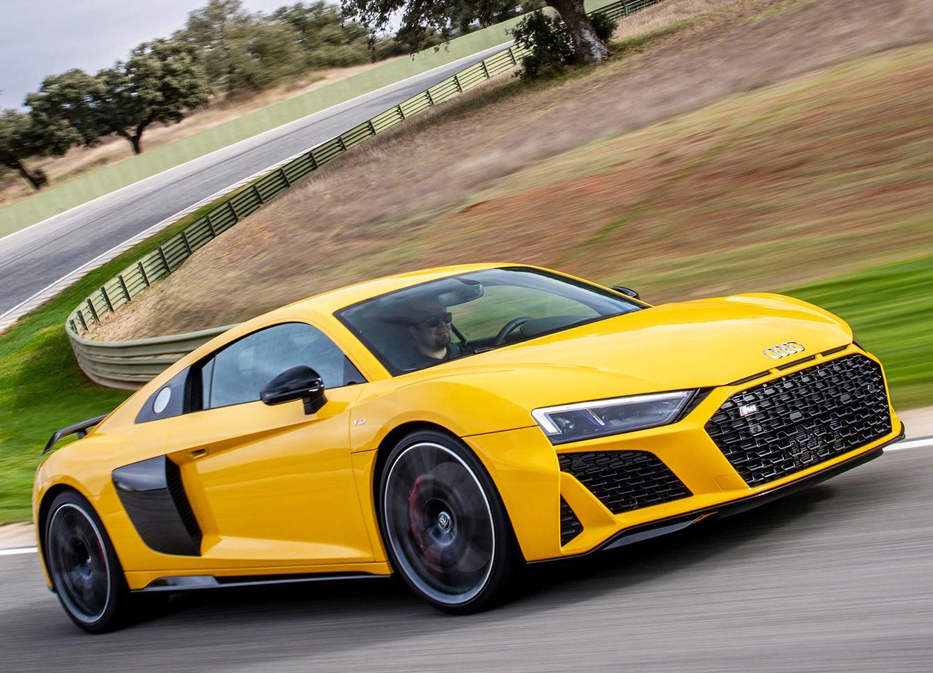 Nej, gult är inte fult utan snarare hypermodernt inom bilindustrin. Forskarrön visar att färgen fungerar som ett antidepressivt läkemedel eftersom gult frisätter serotonin som i sin tur bidrar till vårt välbefinnande. Det är alltså inte så konstigt att förare av nya Audi R8 V10 Performance drabbas av ett kroniskt leende som når upp till öronen. Vi snackar om ett rullande lyckopiller som försetts med en V10:a på 620 hästkrafter.