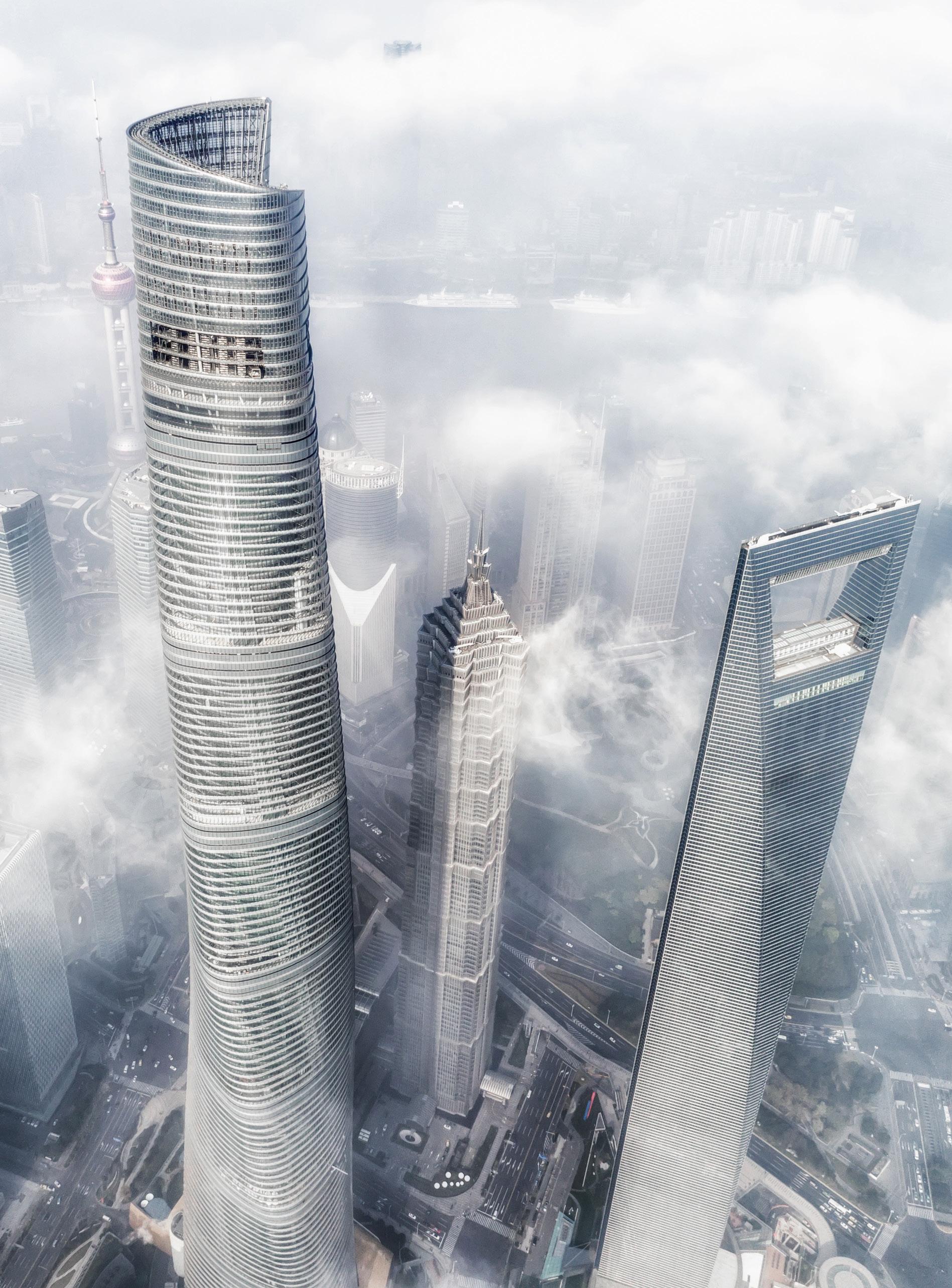 Shanghai Tower är den högsta skyskrapan i Kina med sina 632 meter. Hela skyskrapans exteriör vrider sig en grad per våning för att kompensera för vindeffekten på högre höjd. Shanghai Tower har två glasfasader, en inre och en yttre, som överlappande varandra.