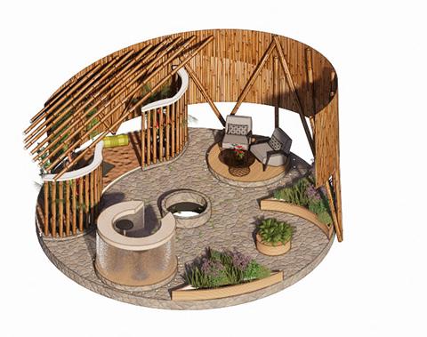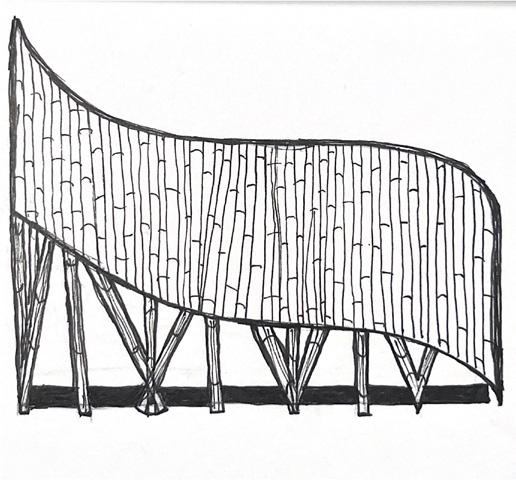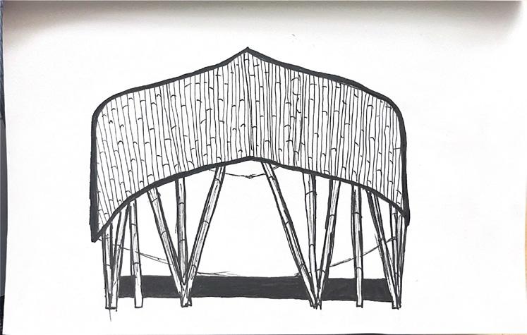 Bamboo beams to magnify a sense of enclosure in meditation space.