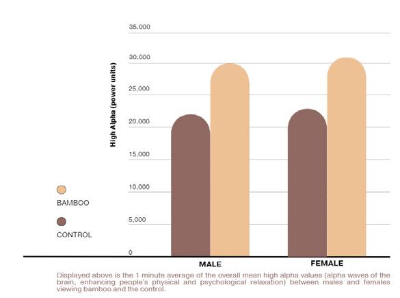 A comprehensive case study specifically targeted university students, revealing the profound relaxation effects associated with the viewing of bamboo. It was proven that students had lower anxiety scores after 3 minutes of viewing bamboo compared with the control. During students’ visual simulation with the bamboo plant, increased brain activity indicated that there was improved relaxation, attention, and blood pressure significantly decreased.