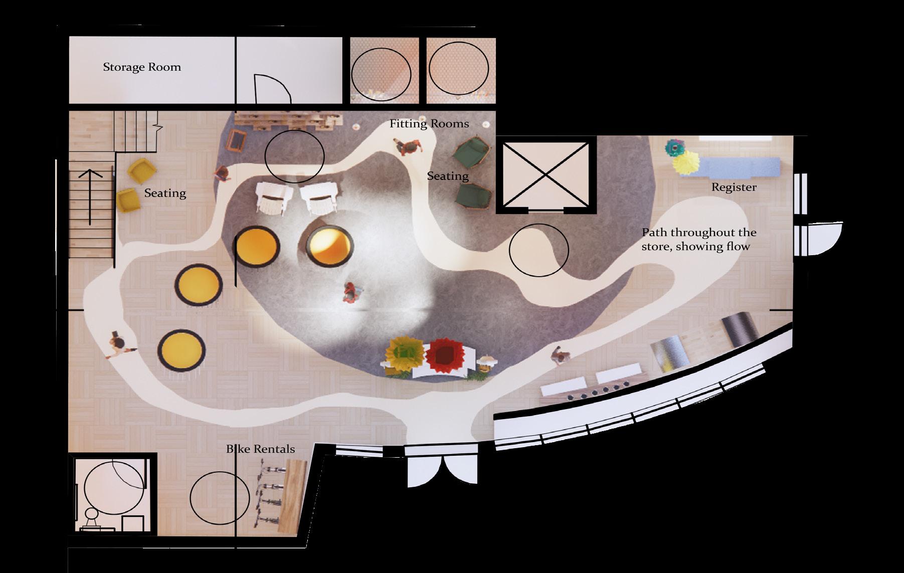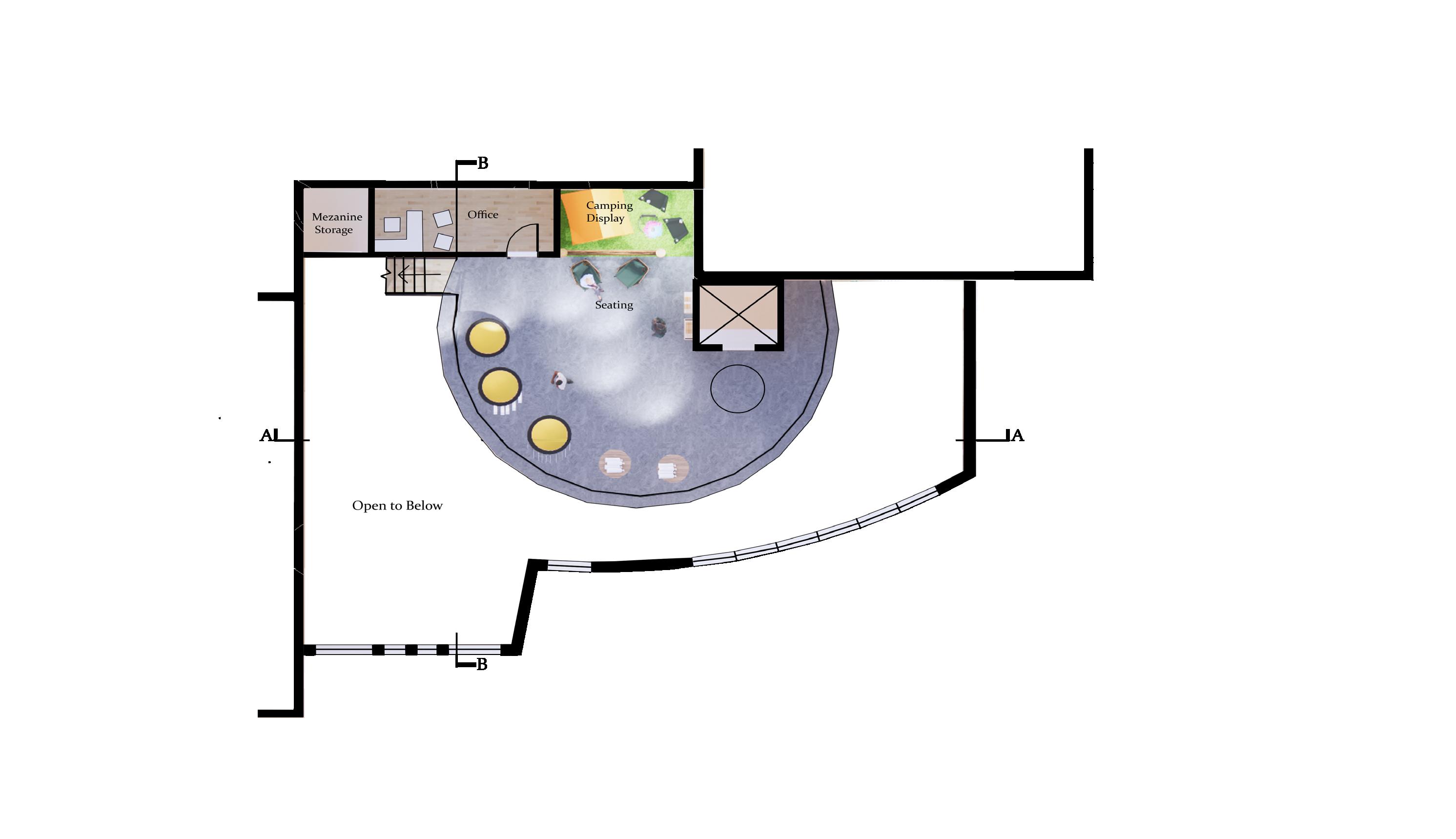 SOAR is an adventure store located in Albuquerque, New Mexico. One of the many things Albuquerque is known for is their hot air balloon festival. Hot air balloons are an outlet for adventure, exploration, and curiosity. Basing SOAR off of the concept of hot air balloons, the retail store has a sense of endless adventure. Keeping curves and roundness throughout the space to represent flow as well as the shape of a hot air balloon. The organization of the store is easy to understand and has a distinct path of travel to it. The store is made of many neutral and natural textures with pops of color throughout the decoration, displays, and materiality.