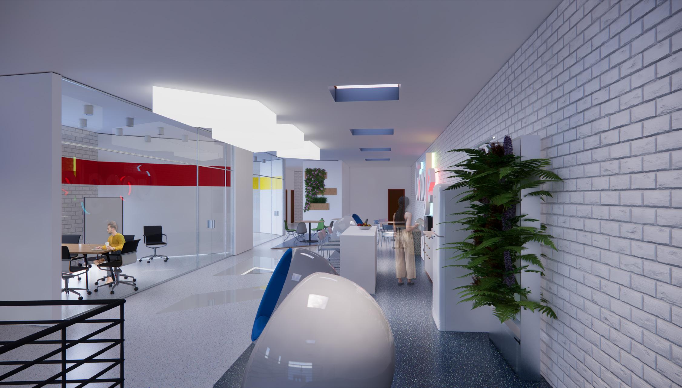 The way we work is rapidly changing for a variety of reasons, and offices are switching to hybrid and co working solutions to respond to their employees needs. The office needs to evolve from a place where people are required to go, to a place that draws people in. The goal of this project was to design a new and enticing workplace in downtown Roanoke, VA. The design should address changes in the current workforces attitude towards the workplace. First, decide a problem to address throughout the design, then propose a solution to develop the design.