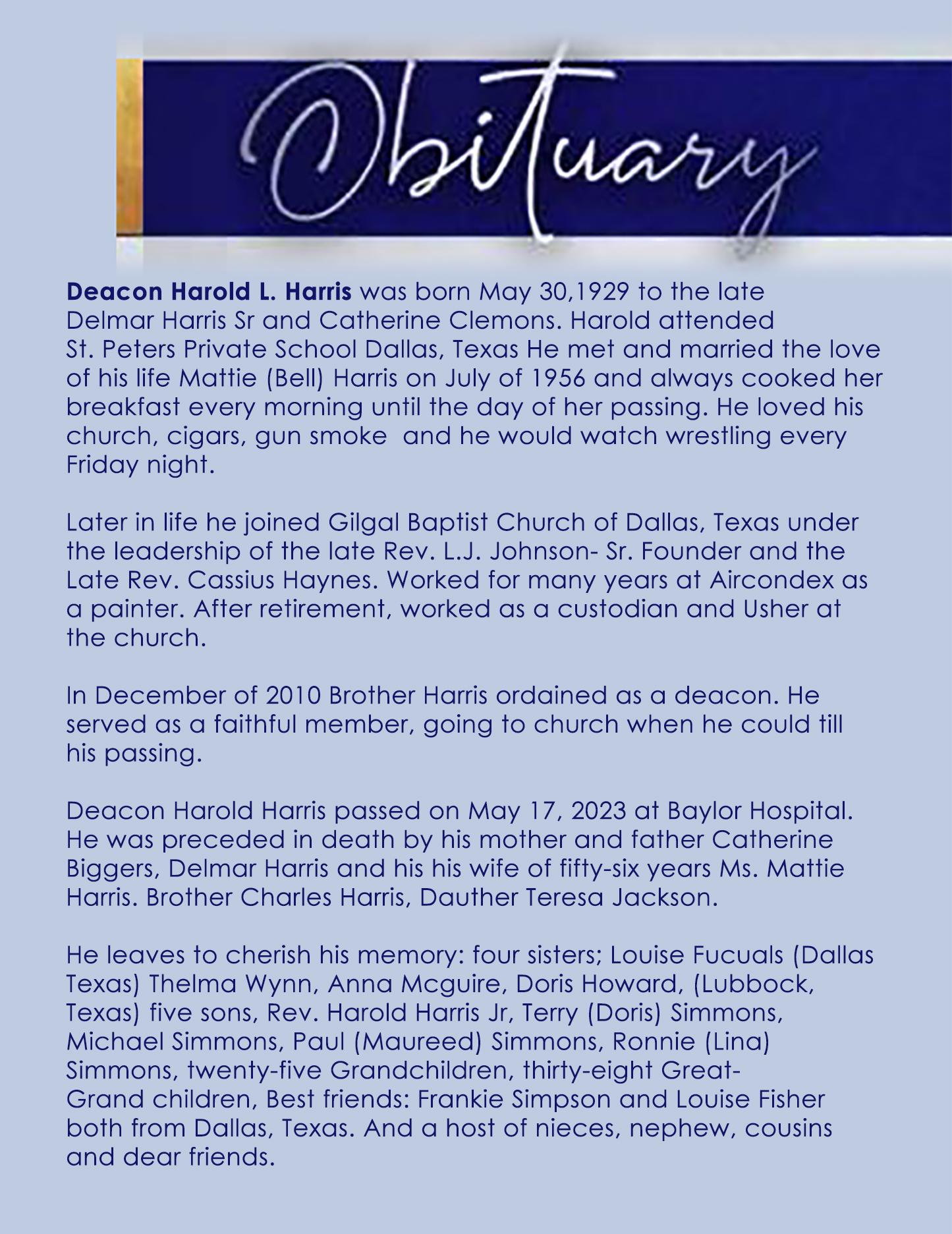 Homegoing Celebration of Mr. Harold Harris