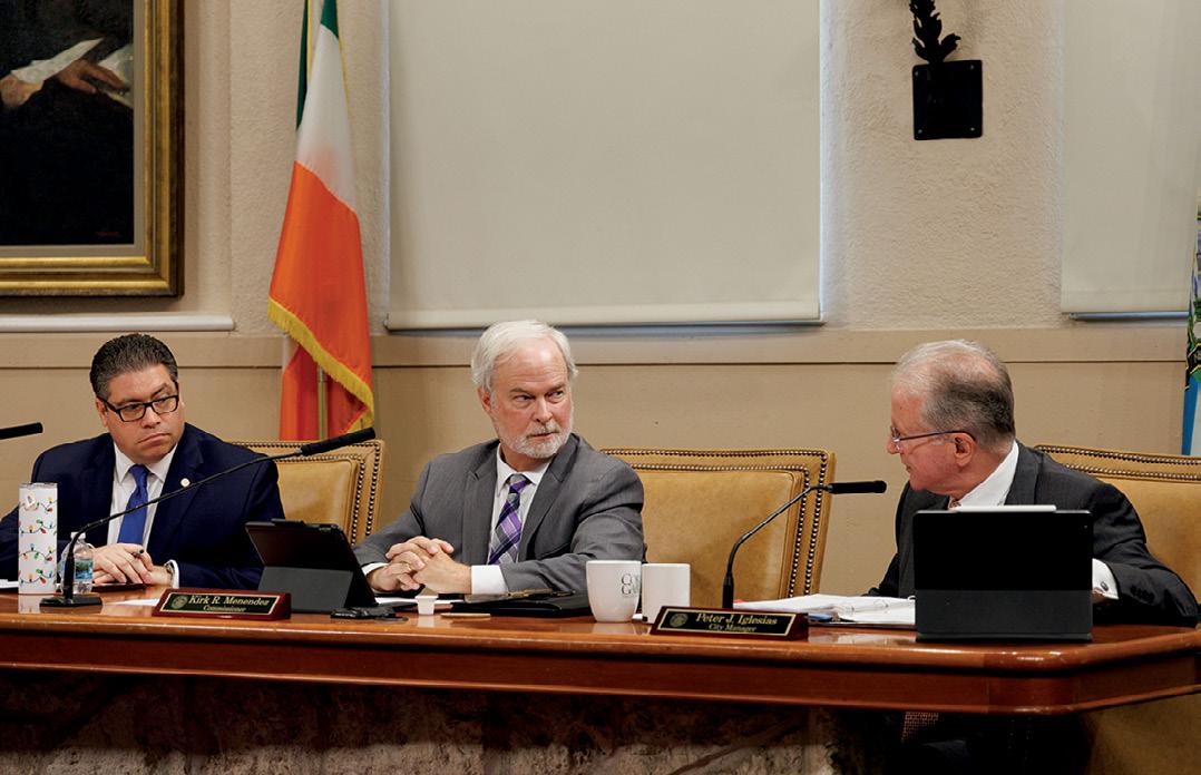 Kirk Menendez voted in favor of moving the item forward even though Prescott was unable to join the meeting until later in the day. Fernandez outlined some of the code enforcement issues city staff found during their walk-through of the hotel the previous week, including non-permitted painting, the construction of a speakeasy, and the lobby renovations. Prescott, though not present, did record a video in which he took full responsibility for the oversight and agreed to pay for any elements that needed to be restored to their historic form. A letter of default was sent to the Biltmore warning that legal action may be taken.