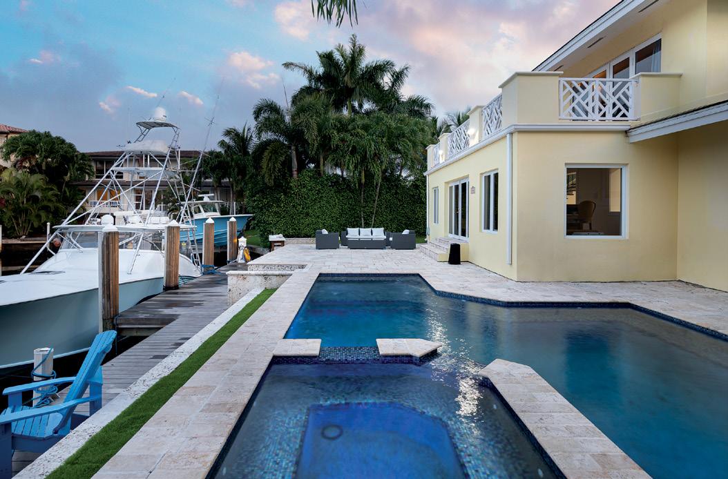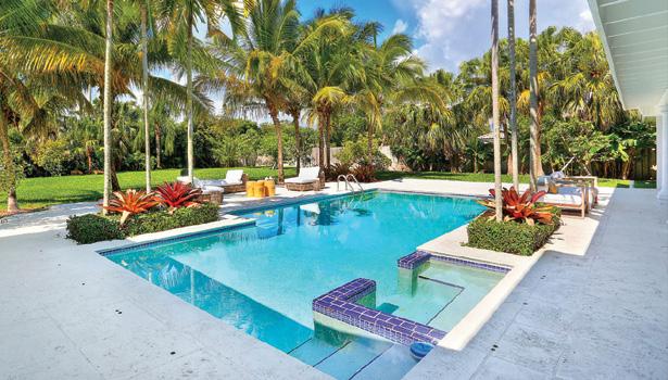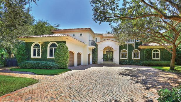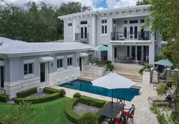 In gated Hammock Oaks, adjacent to Fairchild gardens, this handsome home has vaulted wooden ceilings, impact windows and, for the auto crazy, an eightcar garage. The master suite has two walk-in closets, a loft-style seating area and private balcony with pool access. A 40-foot boat dock across the street included. Listing Agent: Lourdes Alatristo (Engel & Voelkers), 305.926.5322