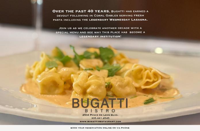 Bugatti prides itself on its pasta – and for good reason, since the restaurant started as a pasta factory. The décor is simple and contemporary, with lots of booths, and the service is crisp and superb, with most of the staff having worked here for over a decade. The dinner menu has reliable pasta dishes under $20, entrees under $30, and as many dessert listings (12) as pasta pick. Pro tip: The only vichyssoise in the Gables, made fresh daily. 2504 Ponce de Leon Blvd. 305.441.2545 $$
