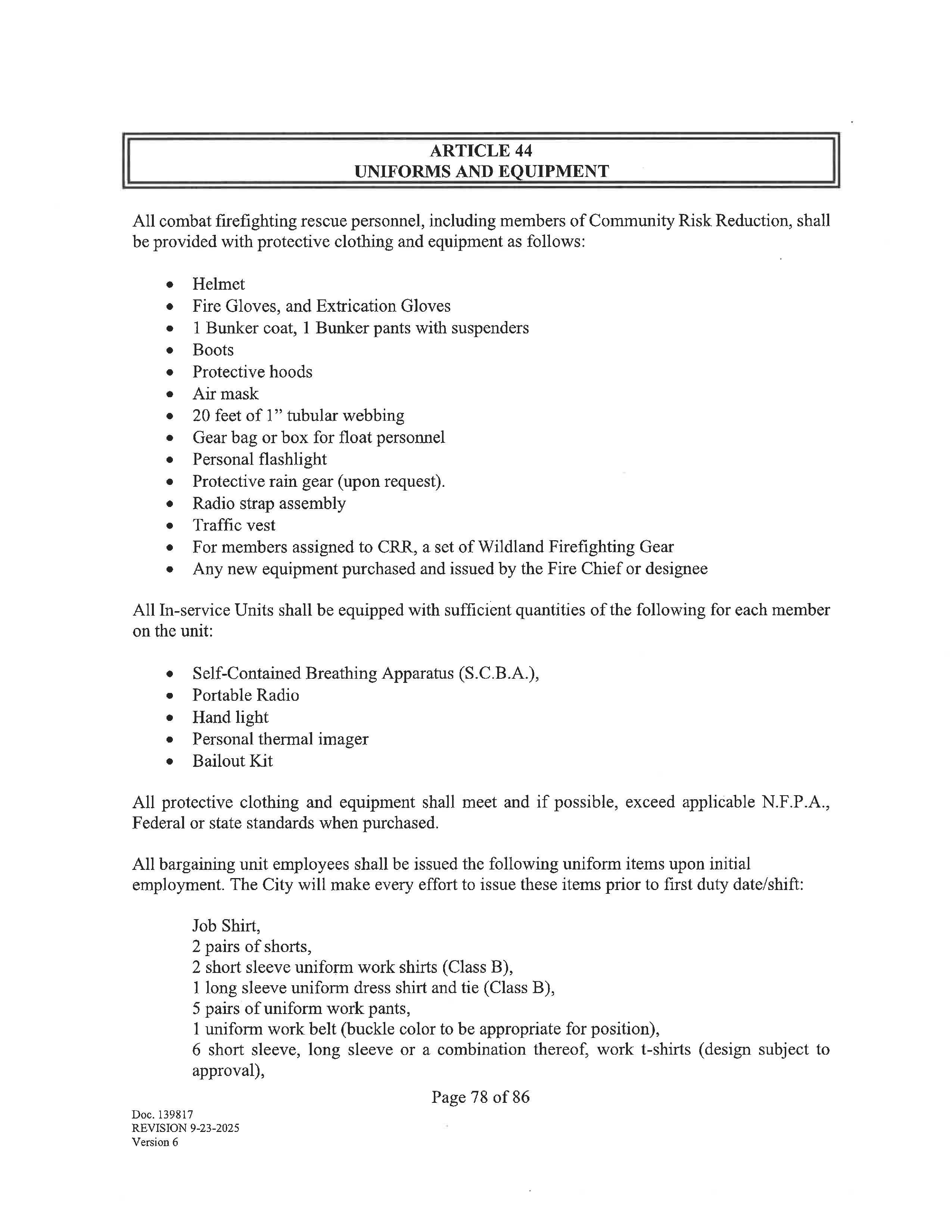 ARTICLE 44 UNIFORMS AND EQUIPMENT