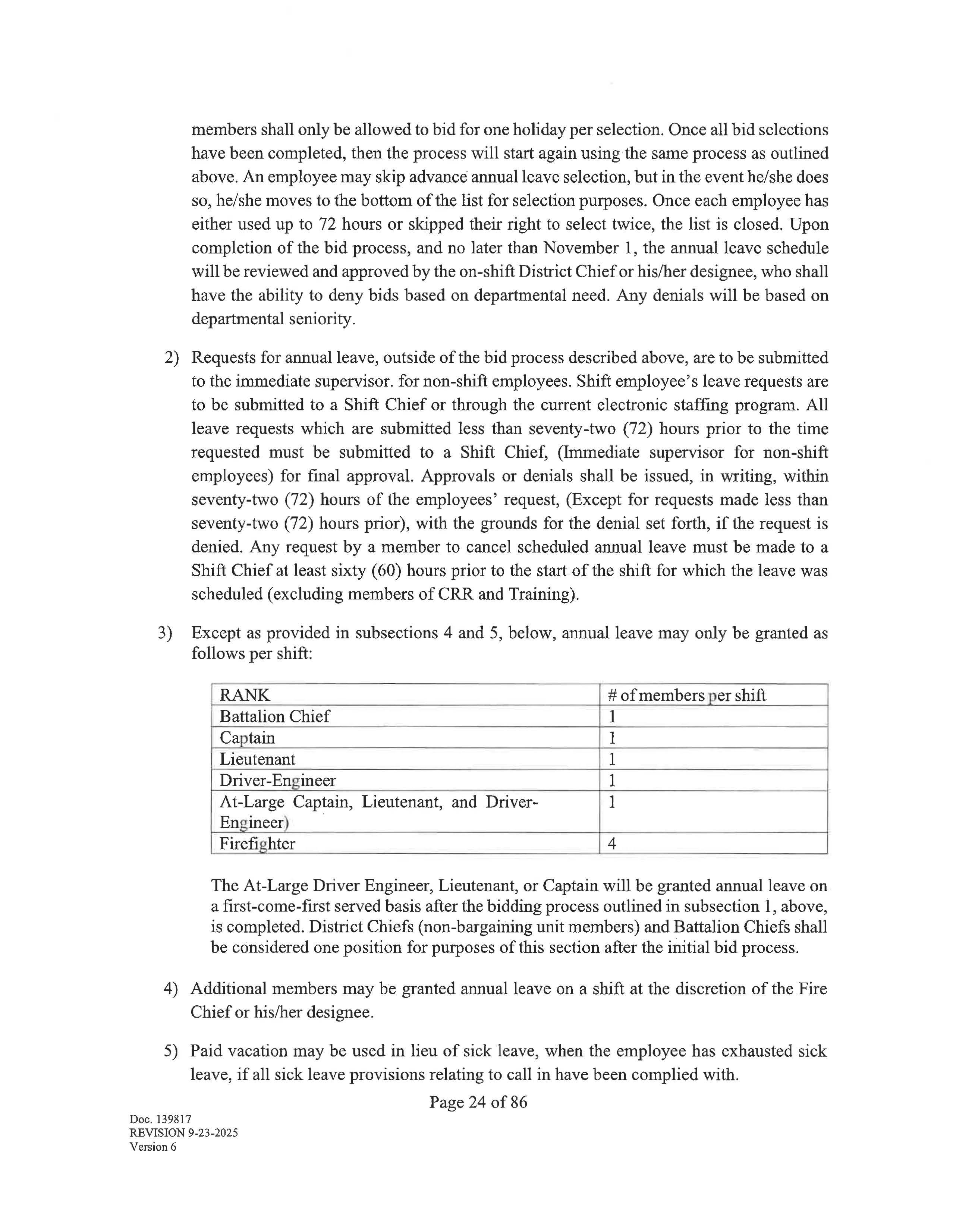 Second Option: Any member who feels they may be unable/ unavailable to provide a phone number and / or be contacted during the designated time and date shall provide their Battalion Chief with their bid selections by September 1st for Station Bids and by September 1st for Kelly Days via Email.