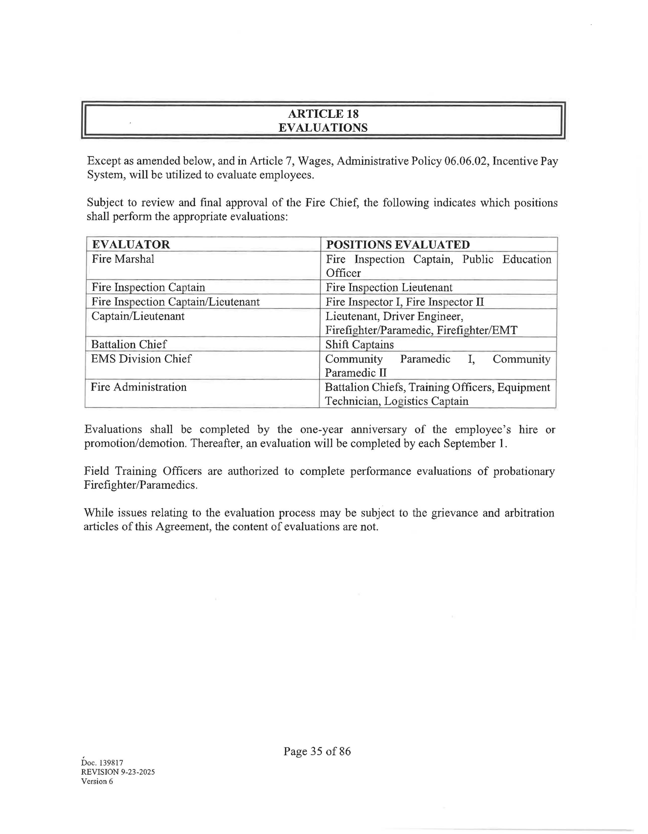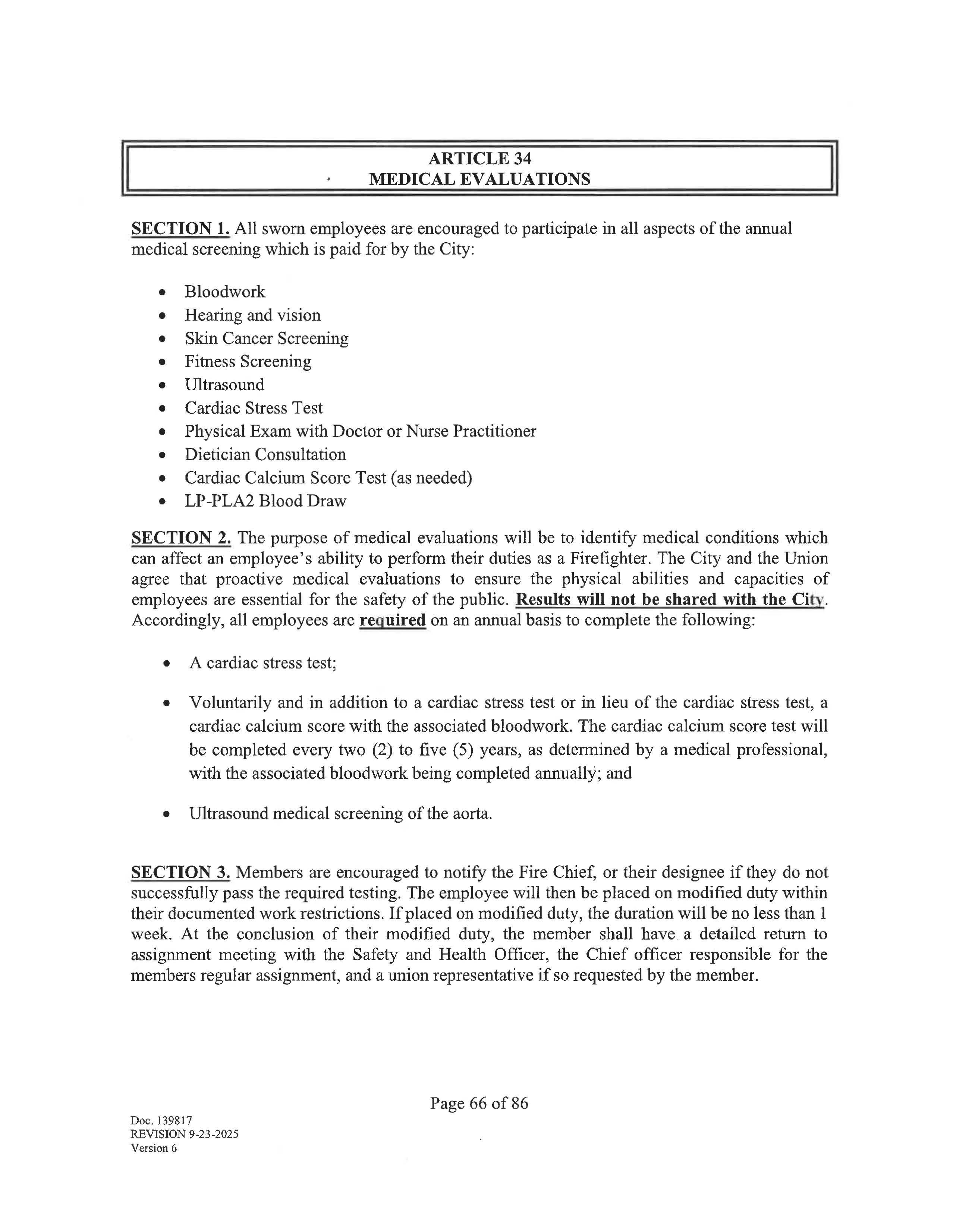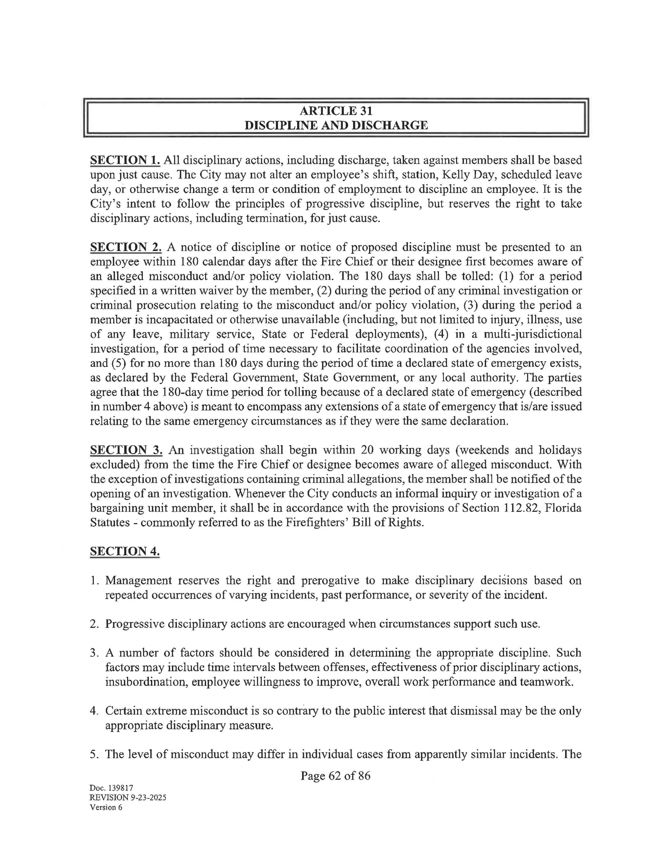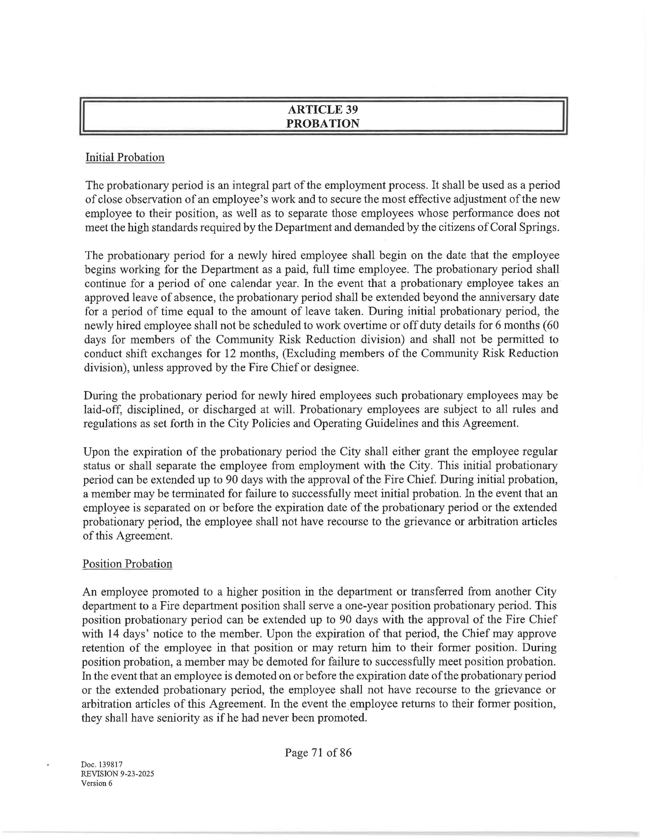 The collective bargaining agreement begins on January 19, 2026 and ends on January 18, 2029. Negotiations may begin at least 180 days prior to the expiration of this agreement upon written notice from either party of a desire to negotiate, renew or terminate this agreement. Upon the giving of such notice, the parties agree to meet at reasonable times and places and seek to negotiate a renewal agreement. The parties shall then proceed as provided by law.