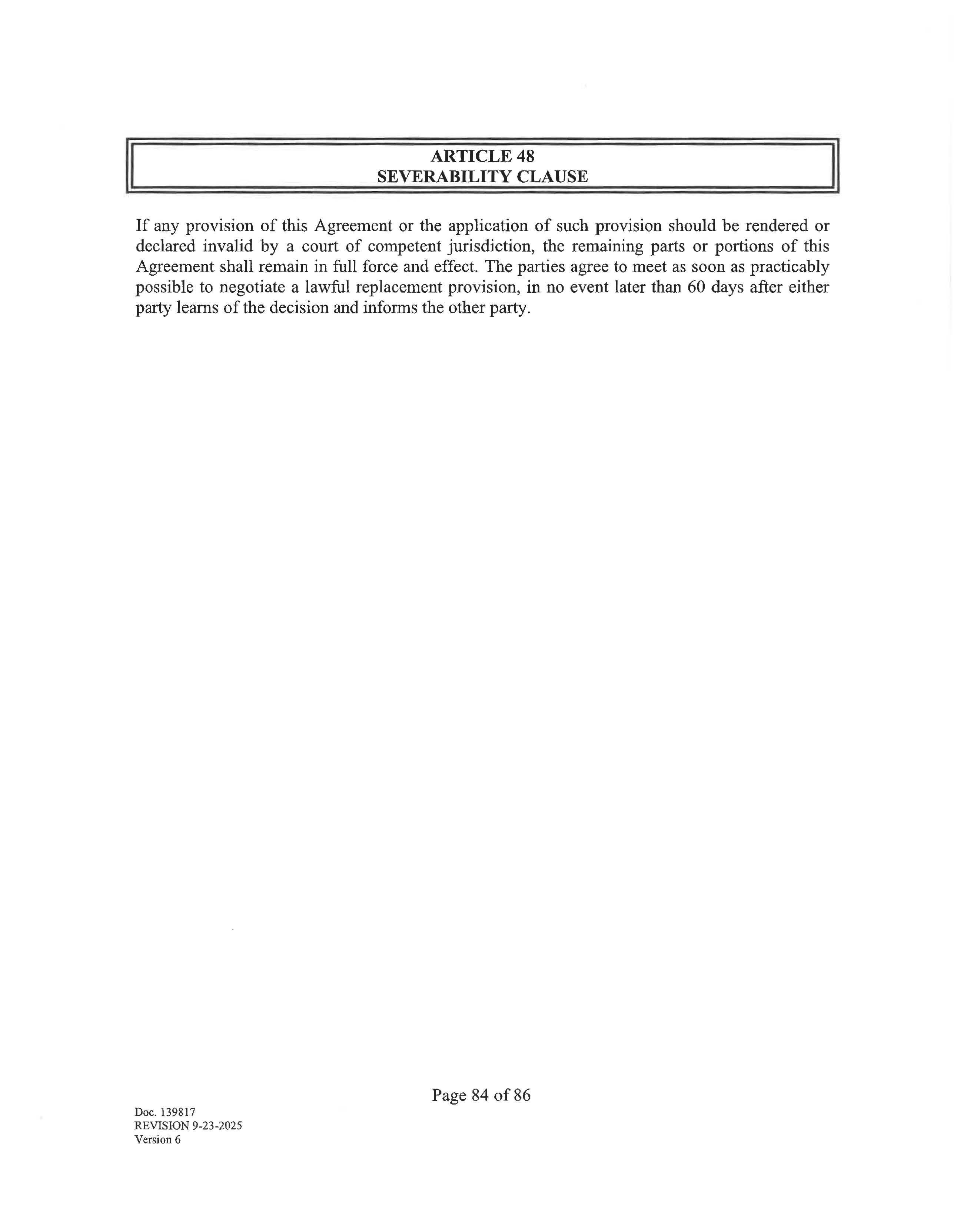 ARTICLE48 SEVERABILITY CLAUSE