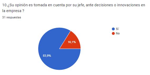 El 83.9% de los docentes mencionan que "sí" son tomadas sus opiniones para la innovación de la empresa.