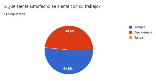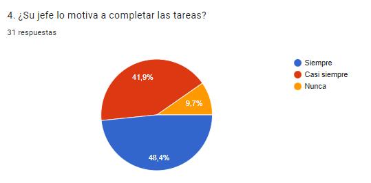 El 48.4% de los docentes mencionan que su jefe "siempre les motiva a realizar sus tareas, lo cual es una motivación para los colaboradores.