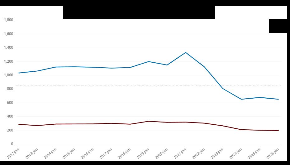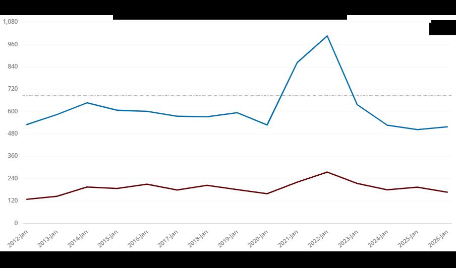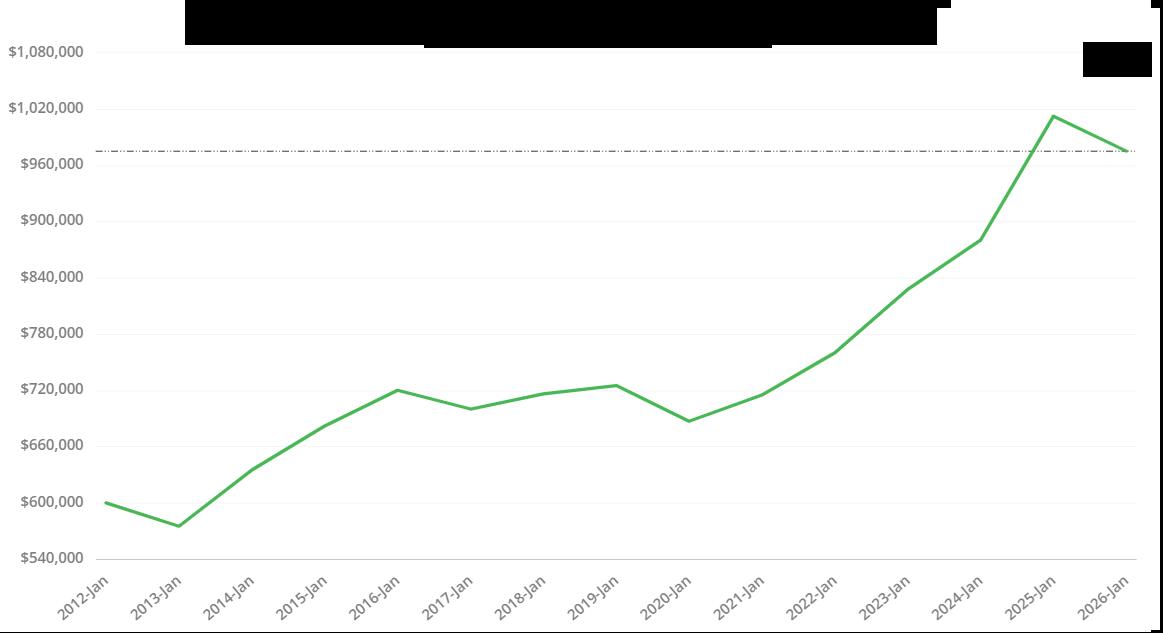 There were 126 closed sales in 2025, down 15.4% YoY, with an average of 30 days on market up 7.1% from 28 days the prior year. The median sale price declined 3.9% YoY from $1,144,880 to $1,100,000. Despite softer activity, pricing remained relatively stable, signaling continued strength and resilience in this segment of the market.