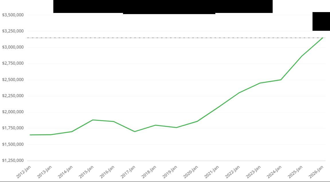 Single-family sales increased 3% in 2025, with Q4 emerging as the strongest quarter of the year. A total of 125 sales closed in Q4, up 6.8% YoY from 117, underscoring sustained demand despite limited supply. The median sale price rose 9.9% YoY to $3,150,000, up from $2,866,300 in 2024. Inventory continued to tighten, with just 650 single-family homes available throughout the year, down 4% from 677 the prior year.