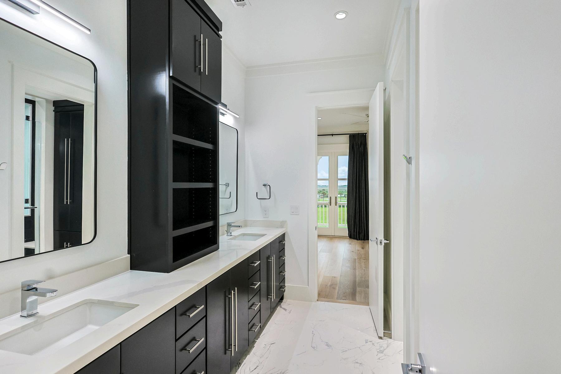 Each bedroom in this coastal estate is a peaceful retreat, thoughtfully designed with upscale finishes and private ensuites Wake up to Gulf or bay views, unwind beneath soaring ceilings, and enjoy the quiet luxury of solid-core doors and custom window treatments