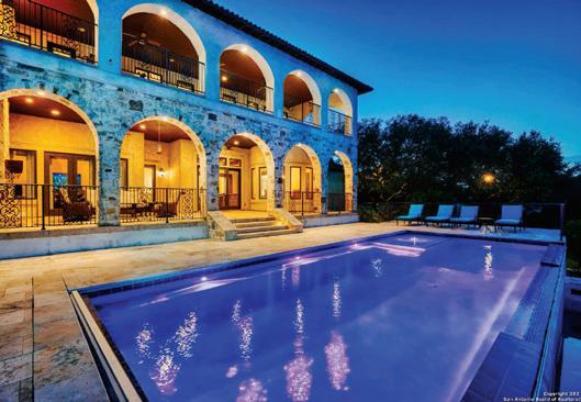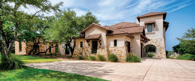 This stunning Modern Organic concept by Paul Allen Homes opens to a wide living area with a great room and dining room with floorto-ceiling windows accenting panoramic views. The chef’s kitchen is complete with Wolf/Sub-Zero/Cove® appliances and wine tower and a separate caterer’s kitchen. The luxurious master suite includes an oversized closet with dressing island, coffee bar, free-standing tub that looks out over an unobstructed Hill Country view and access to an outdoor patio. Flex spaces include an executive study and game room. Outdoors, two covered patios are perfect for entertaining with a kitchen, full bar, audio/visual package, impeccable pool with a spa and waterfall, and a complete landscaping package.