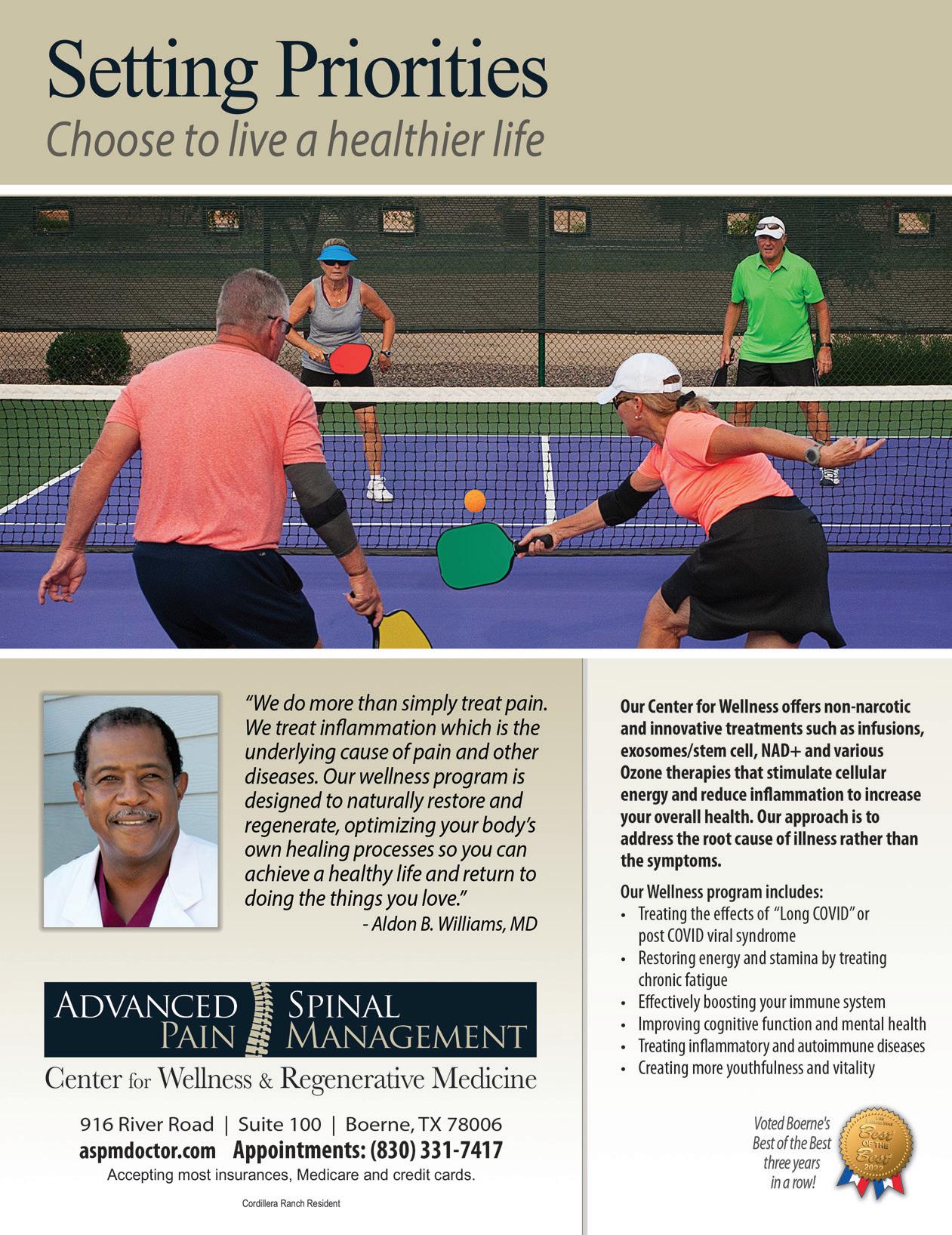 One of the more common questions we hear from people considering a move to Cordillera Ranch is “what’s the typical demographic in Cor dillera Ranch — is it retirees or young families?” to which I often reply: “Yes.” That’s one of the great things about this community. We have a diverse array of young families with kids in school as well as empty nest er retirees, so all ranges of age groups can find social circles to enjoy. This issue of the magazine actually highlights that mix, with our cover feature, Susie and John Long, who moved here to “inch” towards retir ing from successful accounting careers yet can hang on the golf course with the youth movement, as John routinely competes with the best players in the Club (of all ages) — he’s regularly in the mix in the Men’s Club Championship and has multiple Senior Club Championship titles to his name. In fact, this mix of age groups was spotlighted in the recent Men’s Club Championship as John finished 2nd to 18-year-old Price Hill, and ahead of other younger competitors.