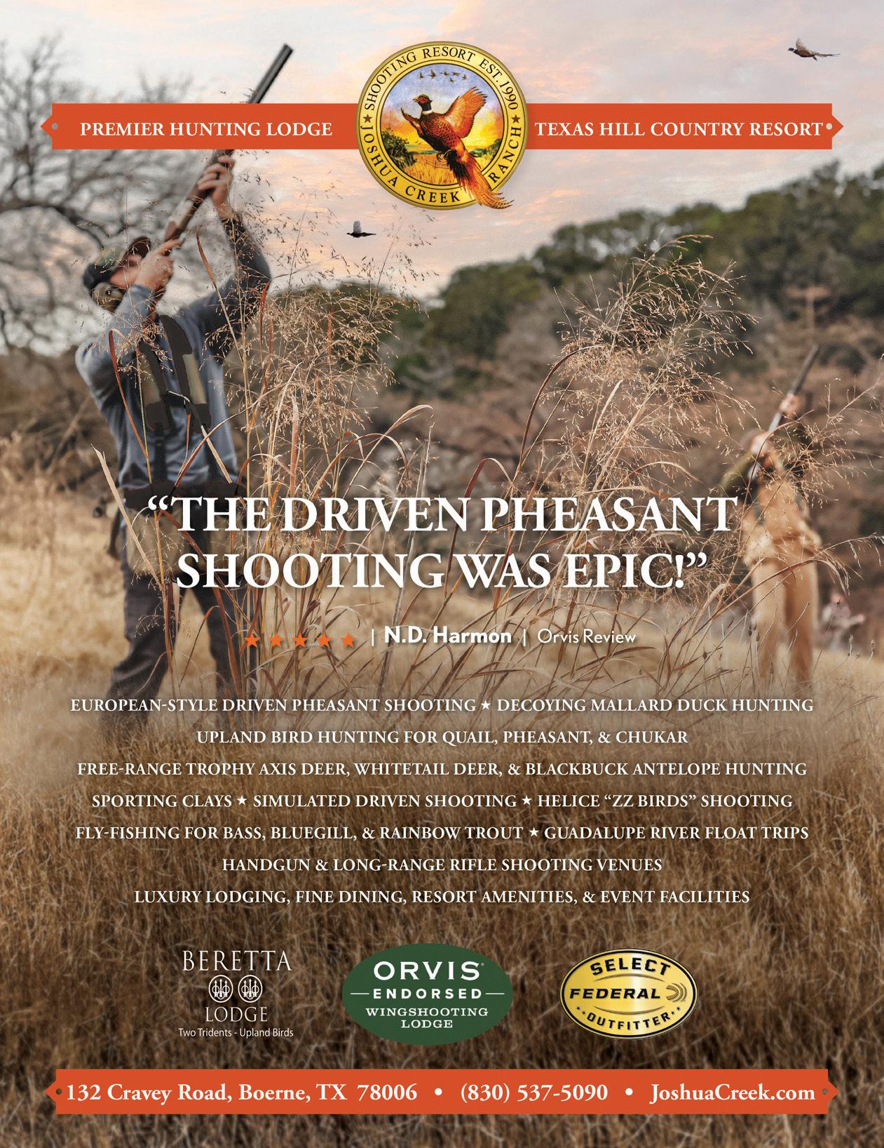 Cordillera Ranch Living is published bi-monthly through a joint venture between Cordillera Ranch Development Corporation and Traveling Blender, LLC. No reproduction in any form is authorized without the consent of both Cordillera Ranch Development Corporation and Traveling Blender, LLC. Cordillera Ranch Living is a registered trademark of Cordillera Ranch Development Corporation. 28 Cordillera Trace, Boerne, Texas 78006. Printed in the USA. All rights reserved 2023. No responsibility is assumed for unsolicited submissions. Manuscripts, photographs, and other submitted material can be acknowledged or returned if accompanied by a self-addressed, stamped envelope. The content contained does not necessarily reflect the opinions and views of Cordillera Ranch Development Corporation, Traveling Blender, LLC, or Cordillera Ranch residents. Cordillera Ranch Development Corporation and Traveling Blender, LLC assumes no liability for misinformation, omissions, or errors.
