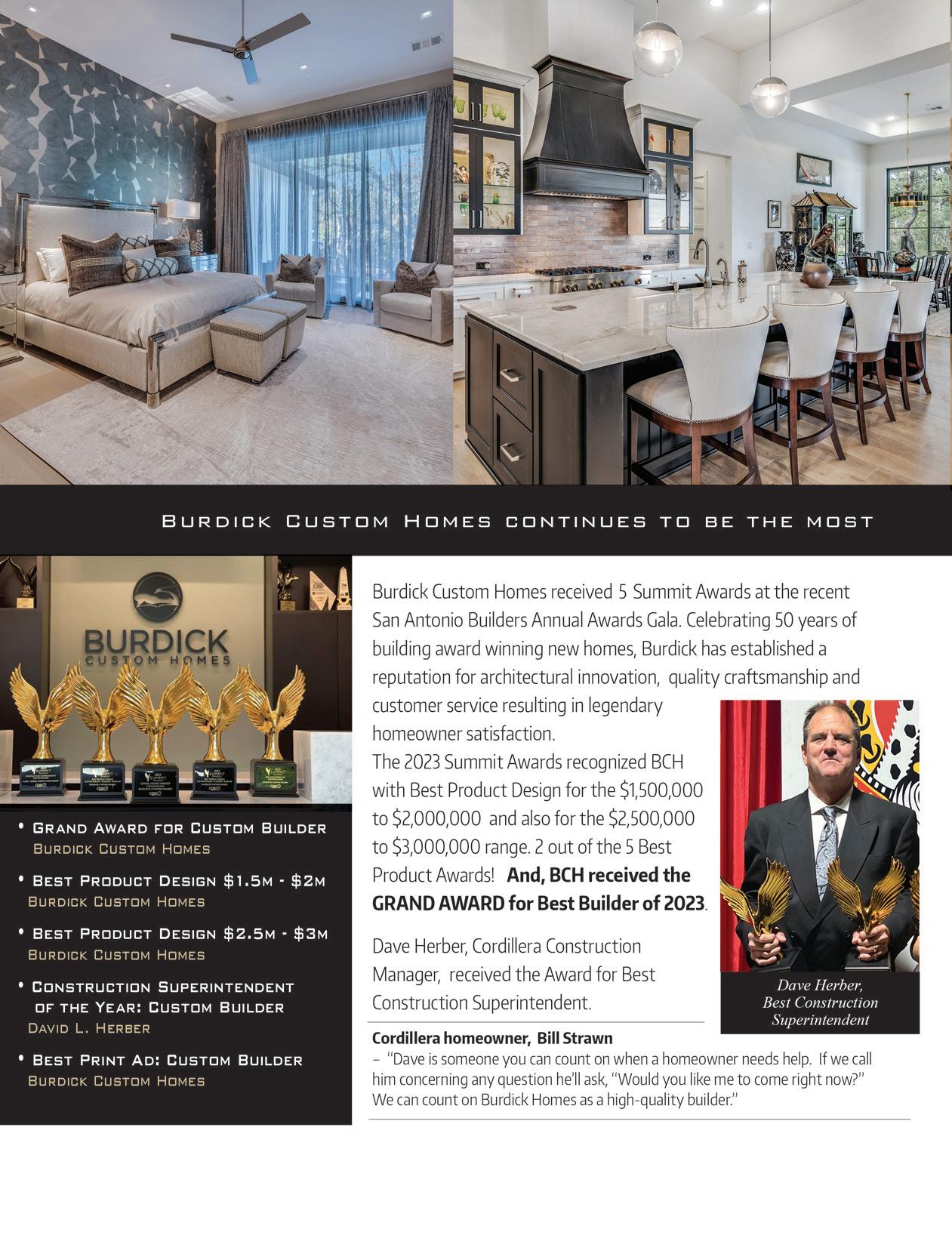 210.497.2200 :: BurdickHomes.com GarnerHomes.com 210.493.1686 830.229.5565 :: TGBuilder.com 830.266.7842 :: LifeStyleByStadler.com 830.336.9131 :: PasaderaBuilders.com 210.493.3204 :: PaulAllenHomes.com CordilleraRanchLiving.com | 73