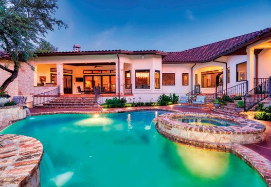 Located in the prestigious, private community of Cordillera Ranch, this spectacular home just went through an extensive remodel and is ready for you. Situated on a sprawling 1-acre home site with breathtaking views of the surrounding Hill Country and Jack Nicklaus Signature Golf Course, the home is a masterpiece of design and craftsmanship, featuring high-end finishes and top-of-theline appliances throughout. With over 5,500 square feet of living space, there’s plenty of room for entertaining guests or simply relaxing with family. The exterior is equally impressive, with beautiful landscaping and a large outdoor living area complete with a pool and spa. The property also includes a three-car garage and a bonus garage for your golf cart, plus ample parking for guests.