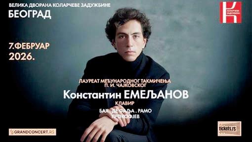 Award-winning pianist Konstantin Emelyanov, laureate of the International Tchaikovsky Competition, returns to Belgrade with a solo recital at Kolarac. The programme spans Baroque elegance and 20th-century expressiveness, featuring works by J. S. Bach, Manuel de Falla, Jean-Philippe Rameau and Sergei Prokofiev, including selections from Romeo and Juliet. Known for his refined musical judgement and imaginative programming, Emelyanov brings together stylistic contrast and narrative clarity in a concert that highlights both historical depth and modern virtuosity.