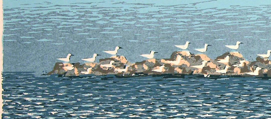 Beck was a skilled painter and woodcarver but became most known for his iconic woodcuts. He carved images in reverse into soft basswood, then coated the wood block with ink and pressed it onto paper. Each color required carving a different wood block, sometimes totaling five wood blocks to complete the print.