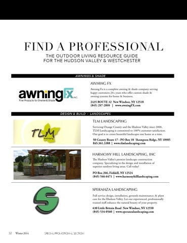 FIND A PROFESSIONAL THE OUTDOOR LIVING RESOURCE GUIDE FOR THE HUDSON VALLEY & WESTCHESTER AWNINGS & SHADE