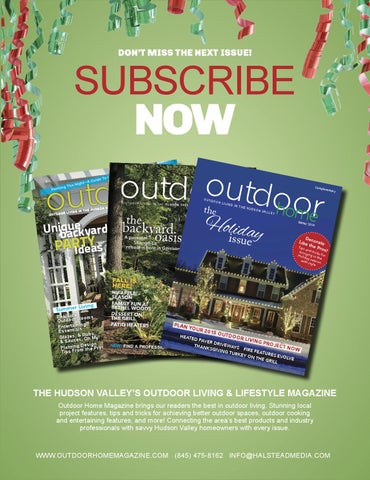 THE HUDSON VALLEY’S OUTDOOR LIVING & LIFESTYLE MAGAZINE Outdoor Home Magazine brings our readers the best in outdoor living. Stunning local project features, tips and tricks for achieving better outdoor spaces, outdoor cooking and entertaining features, and more! Connecting the area’s best products and industry professionals with savvy Hudson Valley homeowners with every issue.