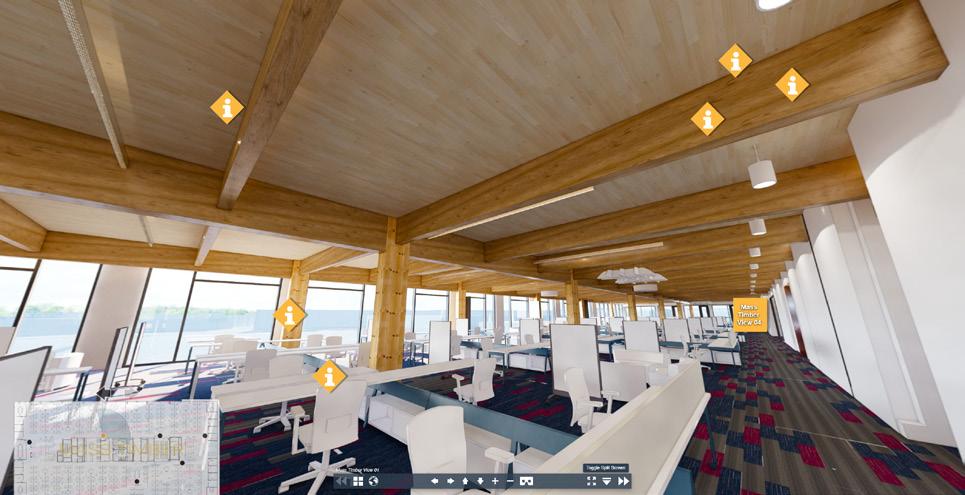 Through an internet browser on any device, jump into the interior of both our mass timber and concrete prototypes to experience the different design qualities and read information pop-ups to share outcomes from this comparison analysis.