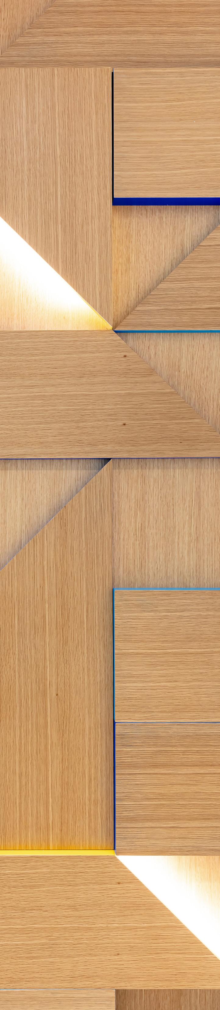Studies show that the use of wood in interior design has a positive effect on user wellbeing.5,6,7 The intrinsic relationship between wood and biophilic design creates an opportunity to bring warmth, connection to natural elements, and relaxation to users nearby. This has been analyzed through several different senses, such as the visual, the haptic, and the olfactory.