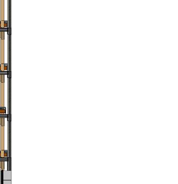 ■ Combining building systems through a raised access floor with under floor air distribution allows for both an exposed CLT panel ceiling (reduced cost and improved aesthetics) and creates a more efficient floor-to-floor height (16’ to 13’-4 ¾” floor-to-floor height), reducing overall building height (13.3% reduction)