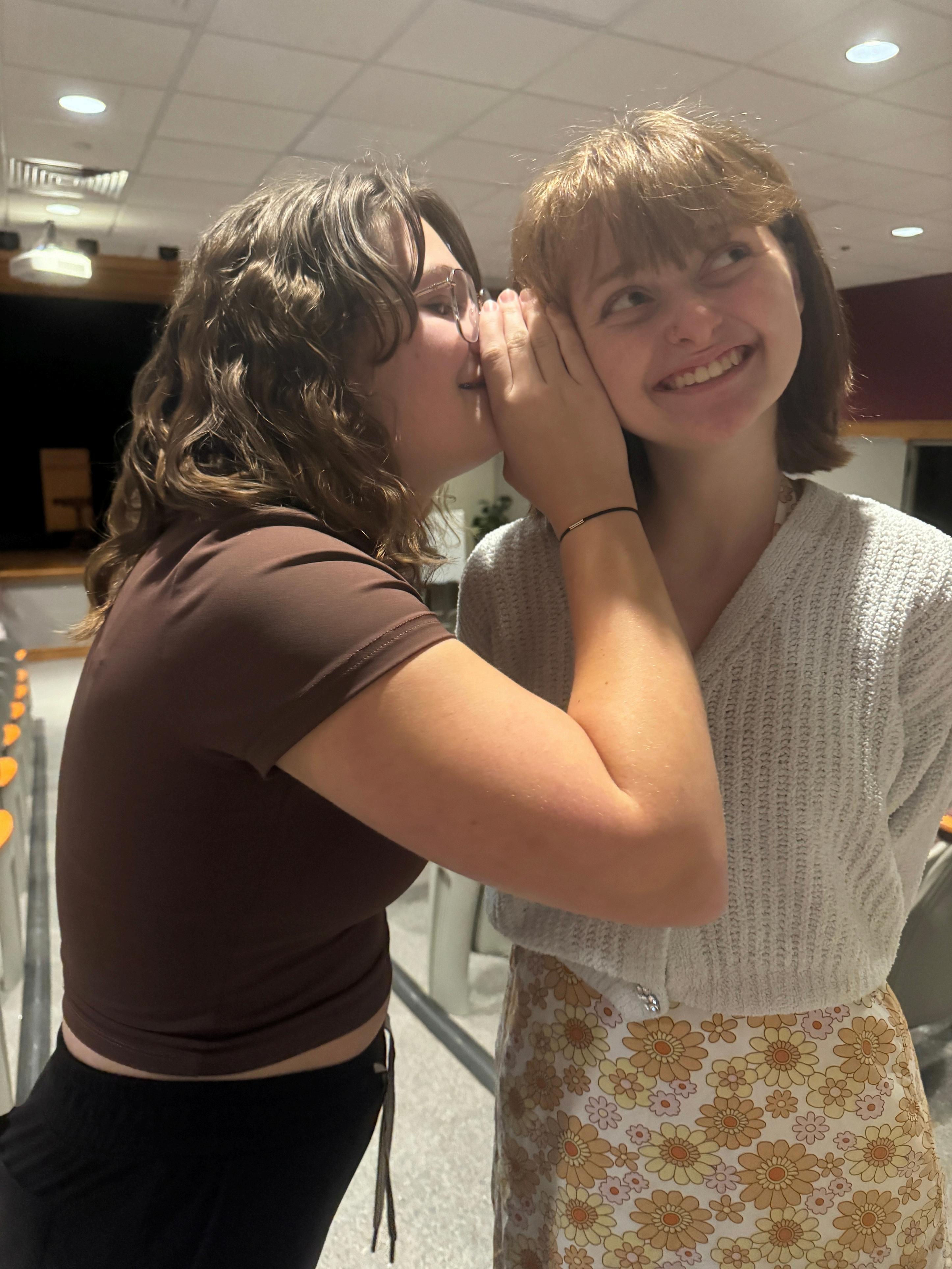 Along with the hard-working cast, the people behind the scenes were working just as much. Stage manager Maura Horan ‘26 and assistant stage manager Mia Eickhoff ‘27 worked to coordinate the crews with the cast along with all the hours they put in attending every rehearsal to make sure everything ran smoothly. Something new the stage manager did this year was calling the show. Instead of light and sound crew getting their own scripts to mark their cues for, Maura was on a headset giving the cues to the crews Along with the work both put in as stage managers, they also helped on multiple crews Mia helped the stage crew, and Maura led the MOUSE (marketing and house) crew.