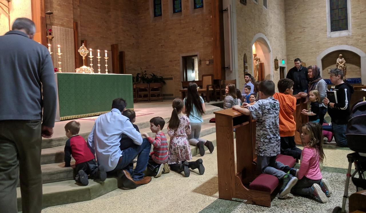 the church. After nailing down the name of the group, we began hammering out event planning. We wanted events that were Christ-focused and we also wanted a variety, so that first year we had events like “Stations of the Cross,” as well as “Meet Up at Lake Michigan.” The events change every year but some have become fan-favorites that everyone looks forward to, such as “Family Adoration,” “Christmas Caroling in the Eastside Neighborhood,” and the “Easter Egg Hunt.”