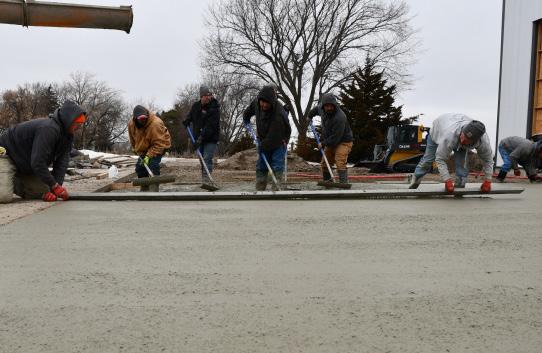 Construction at the new Corn Belt Power Cooperative vehicle storage facility north of G&T headquarters continues as Sande Construction and a cement subcontractor pour a fresh section of concrete in front of the new wash bay March 2.