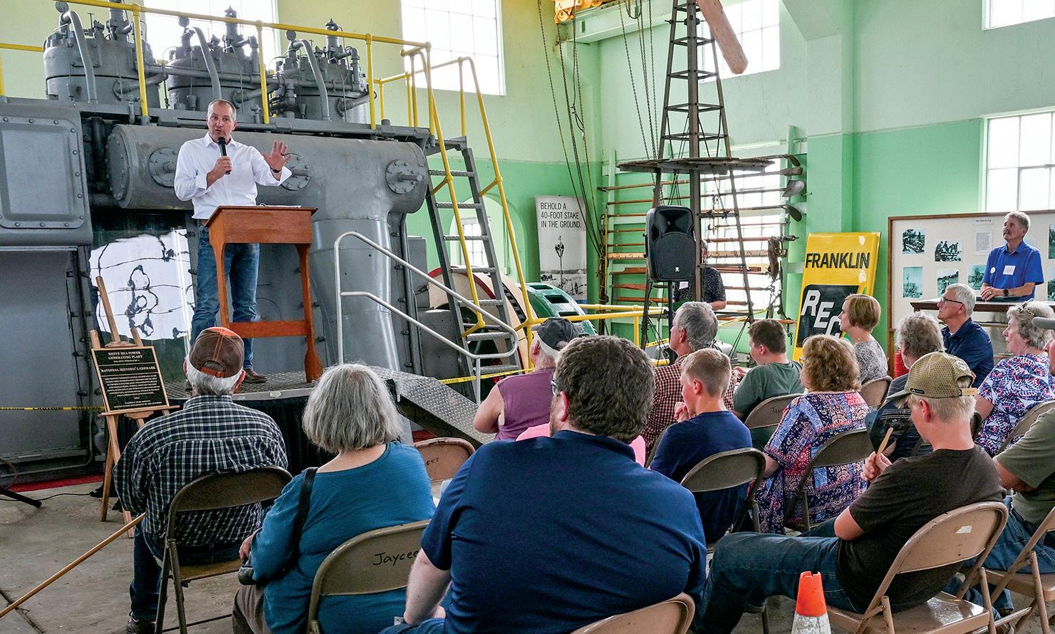 Above | Iowa Secretary of Agriculture Mike Naig speaks to attendees July 9 near Hampton about the vital role facilities like the Reeve REA Power Generating Plant played in the early days of rural electrification.