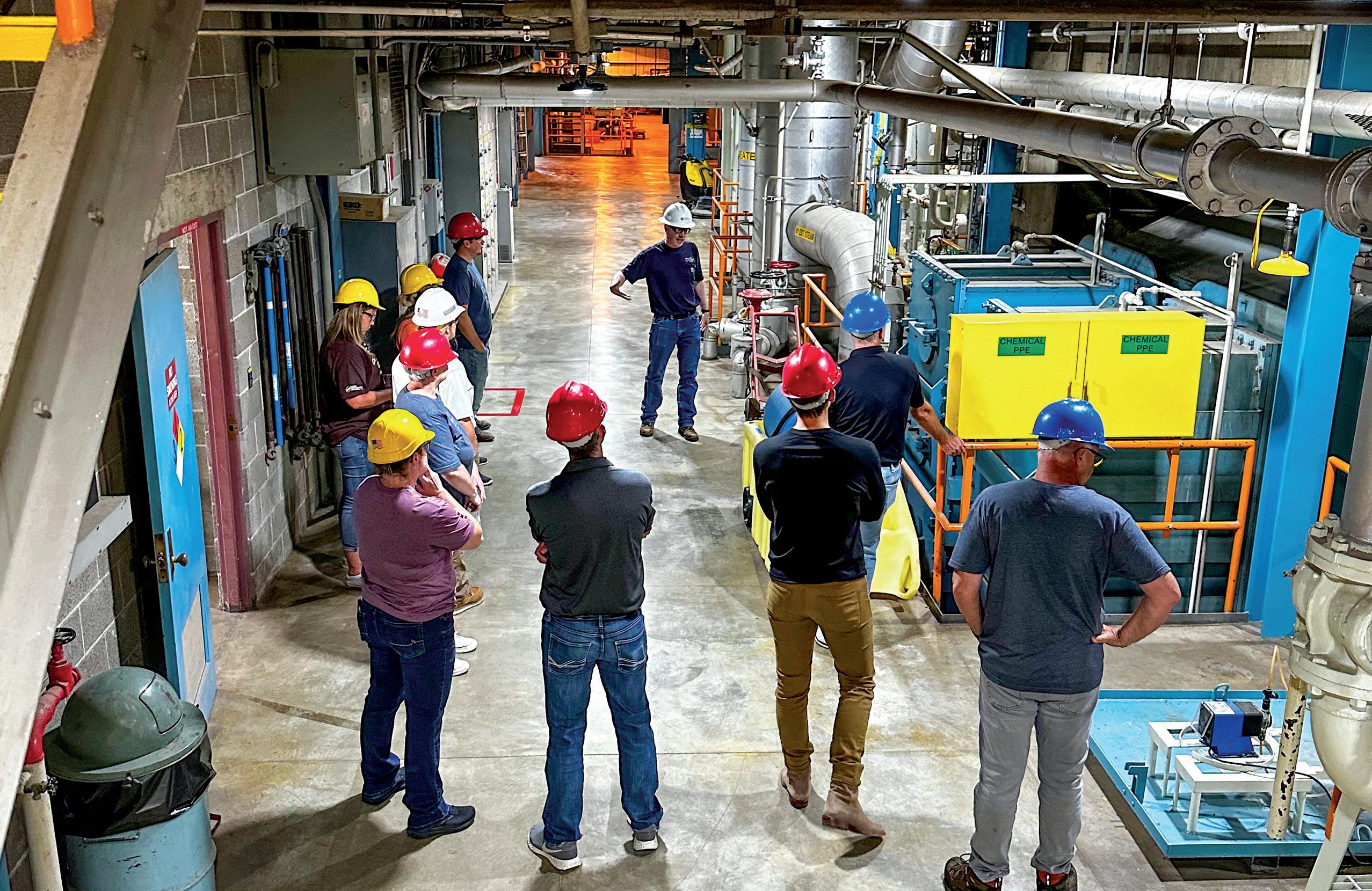 Patrick Connor, Wisdom plant manager, shows the Corn Belt Power Finance and Admin department around Wisdom Station July 15.