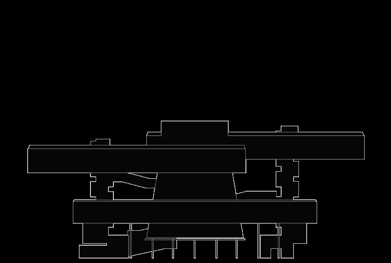 As this project developed, the dynamic between intricate circulatory form and aesthetic structural elements became a critical catalyst for design interventions. From the exterior, the library approximates a “Z” shape from all four cardinal directions. This effect is derived from an array of exterior switchback, or “zigzag”, ramps. These ramps, and the sculpted, volumetric objects that adorn and support them at major nexuses of the paths, unify to create the secondary structural component for the library’s floor plates.