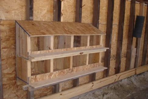 Purchased or homemade nesting boxes should allow one opening for every 4 hens.
