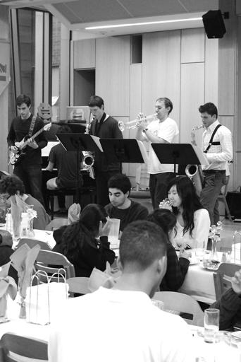 The Appel Septet, a jazz group, plays during dinner at Hans Bethe House Wednesday