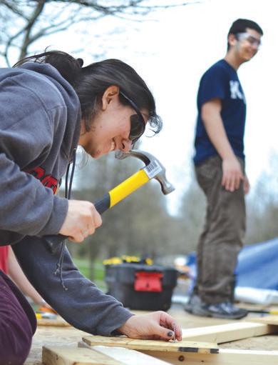 Jesella Zamrano ’13, a Sun photographer and co-president of Habitat for Humanity, takes part in Truss Days on Ho Plaza Wednesday