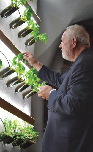 Going green | Prof Dickson Despommier, Columbia University, looks at a hydroponic bottle wall in Stella’s following his lecture in Milstein Hall Wednesday