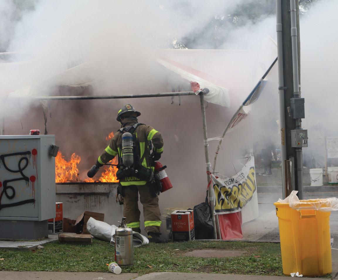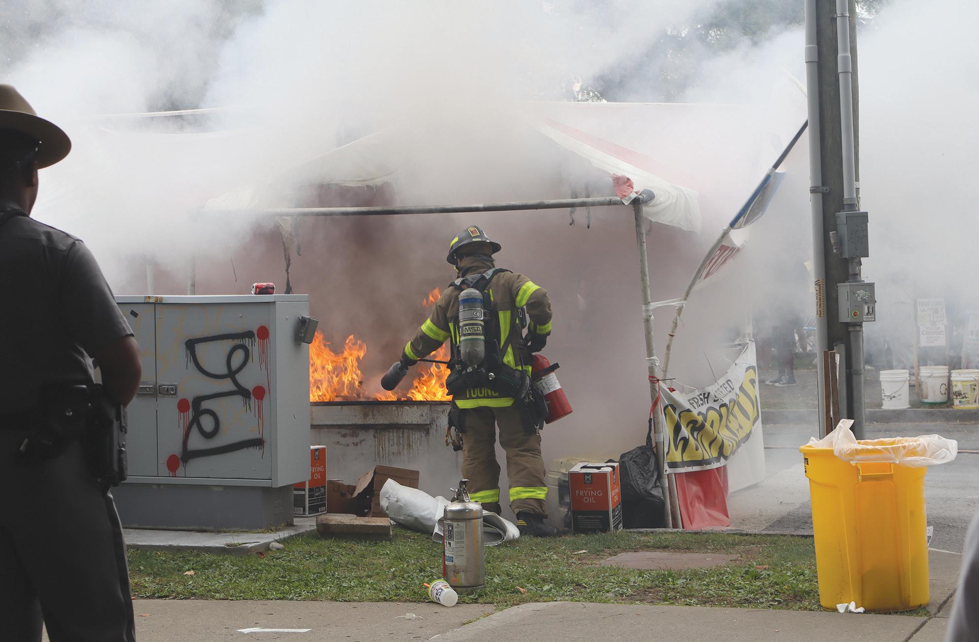 The fire started at a food stand around 2:40 p.m. when it appeared that the oil from the grill ignited, spreading throughout and burning the top of the tent.