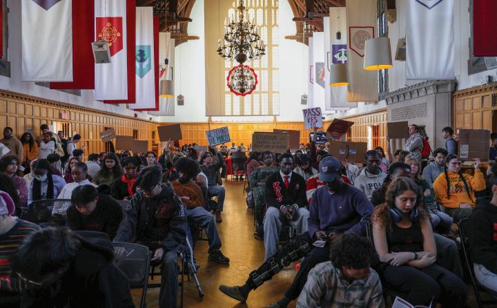 From chants and chair turning, to protest signs and pamphlets, to Greek letters and governance, Te Sun captured the scenes of Tursday’s Student Assembly meeting.
