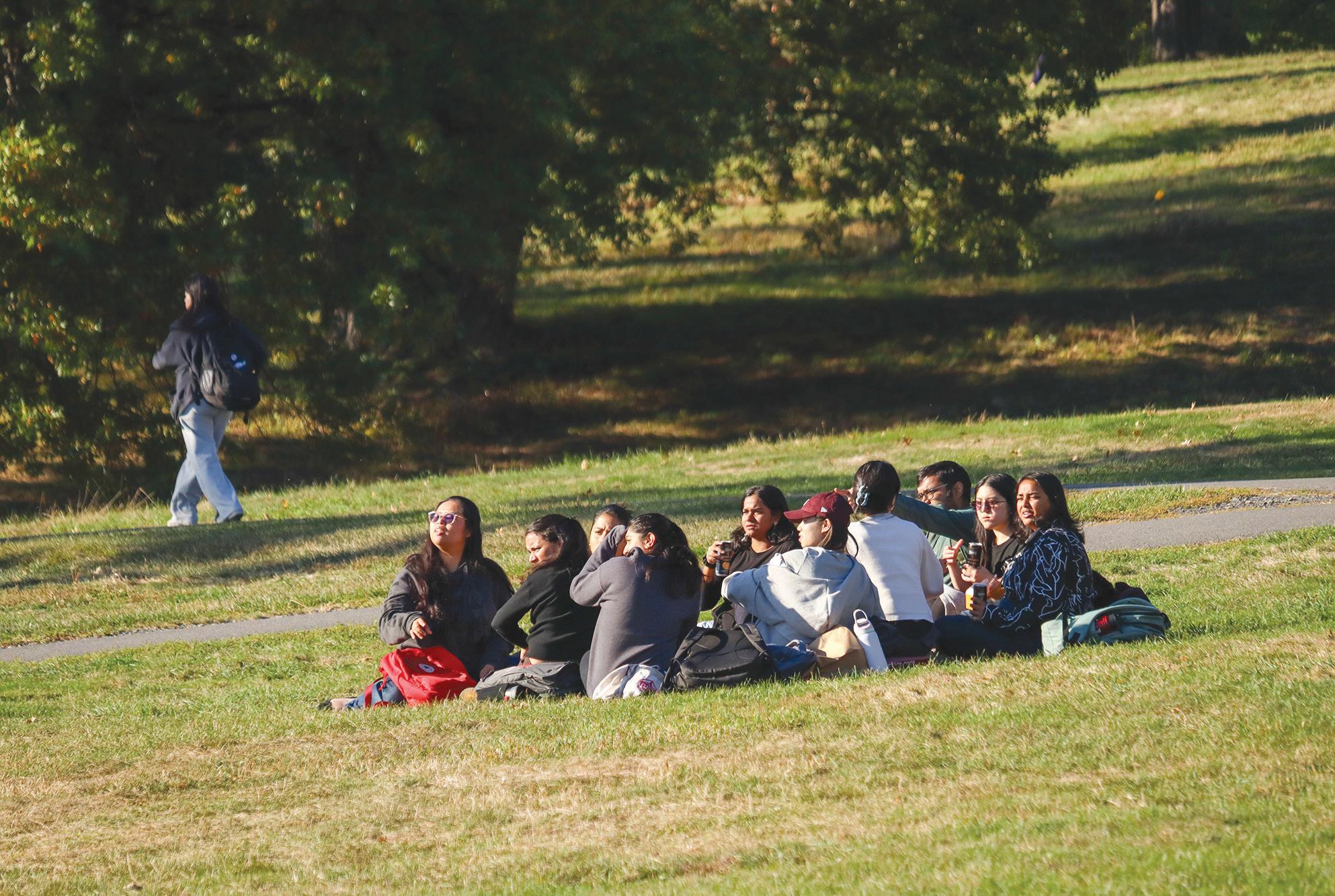 SLOPE STUDY SESH | Some students take advantage of the good weather to study on Libe Slope.