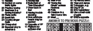 03/02/23 ANSWER TO PREVIOUS PUZZLE: English? That’s 10 “You can relax 12 Disappointment 22 School org. for 26 “Mad Men” star 31 Classic arcade 32 Uber alternative 34 Suffix meaning 36 Litter’s smallest castaway and Mavs