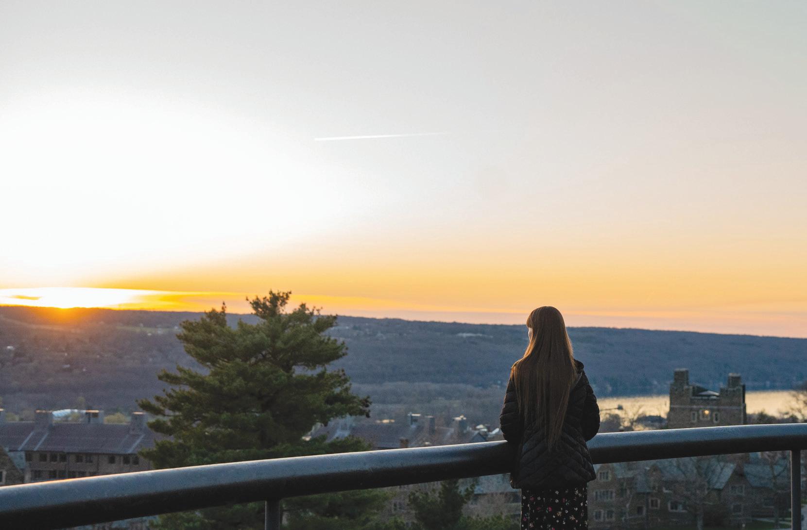 PONDERING | A student watches the sun set over Libe Slope.