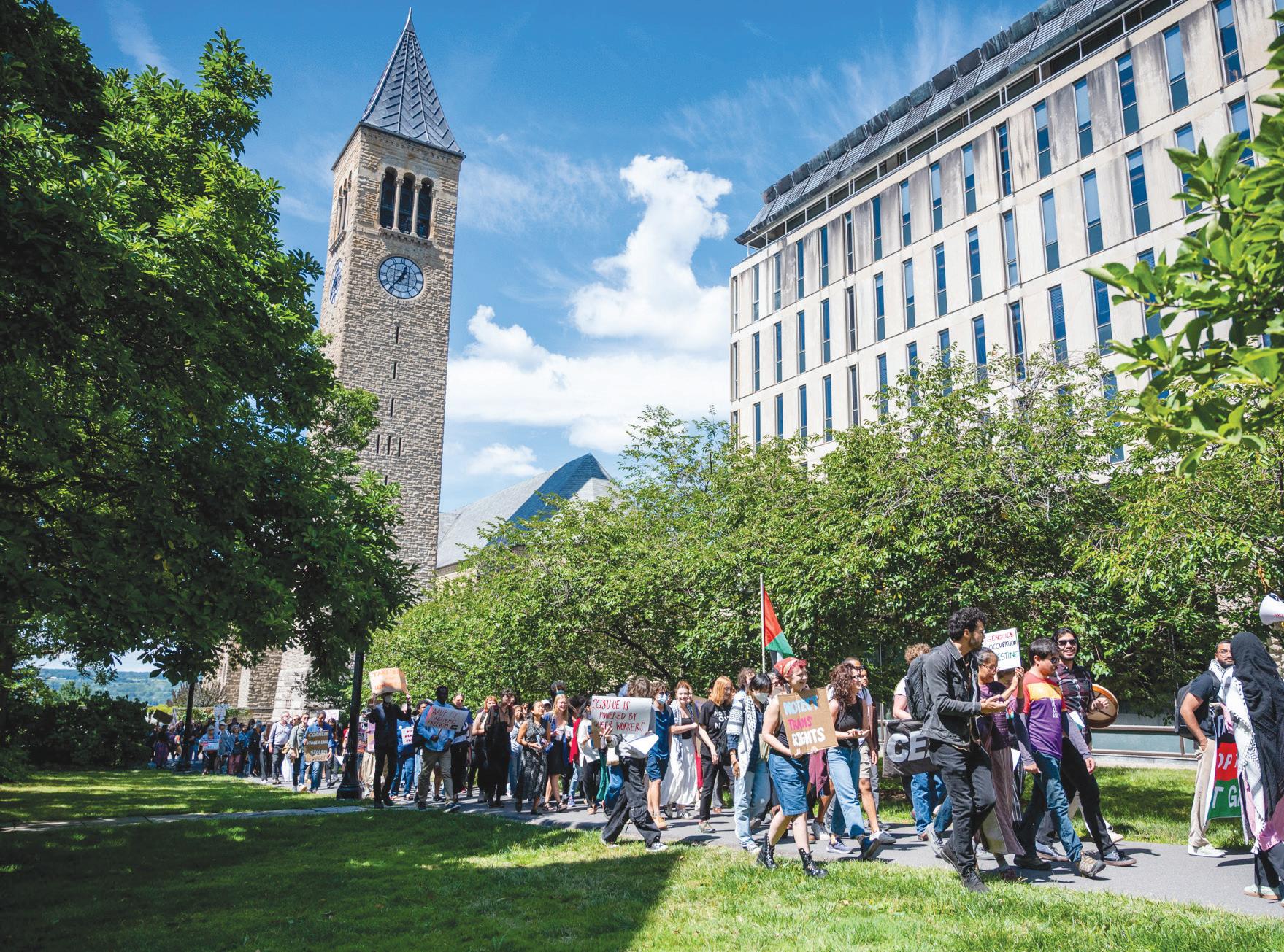The rally, which was jointly organized by Cornell American Association of University Professors, Cornell Collective for Justice in Palestine, Cornell Graduate Students United and Cornell on Fire, protested against the war in Gaza, climate change, and for the rights of graduate, international and transgender students.