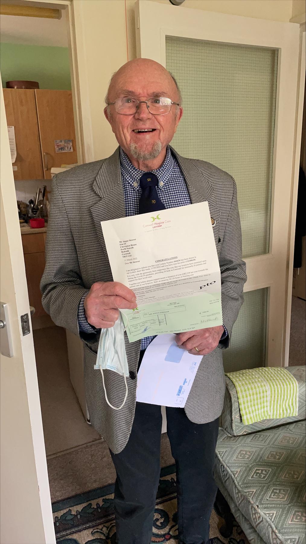 “Good morning, this is Angus from Redruth who was the winner of £1,000 on the Cornwall Hospice Care lottery this morning. Angus is excited and is going to be claiming his winnings this afternoon! This has made his day and is lovely to see him so happy. Thank you. ” Kayleigh (on behalf of Angus), Redruth