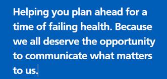 IT IS A DISCUSSION ABOUT WHAT MATTERS TO YOU, YOUR THOUGHTS, WISHES AND PREFERENCES FOR THE FUTURE. THESE CAN BE RECORDED AND SHARED WITH YOUR LOVED ONES AND HEALTH CARE PROFESSIONALS INVOLVED IN YOUR CARE.